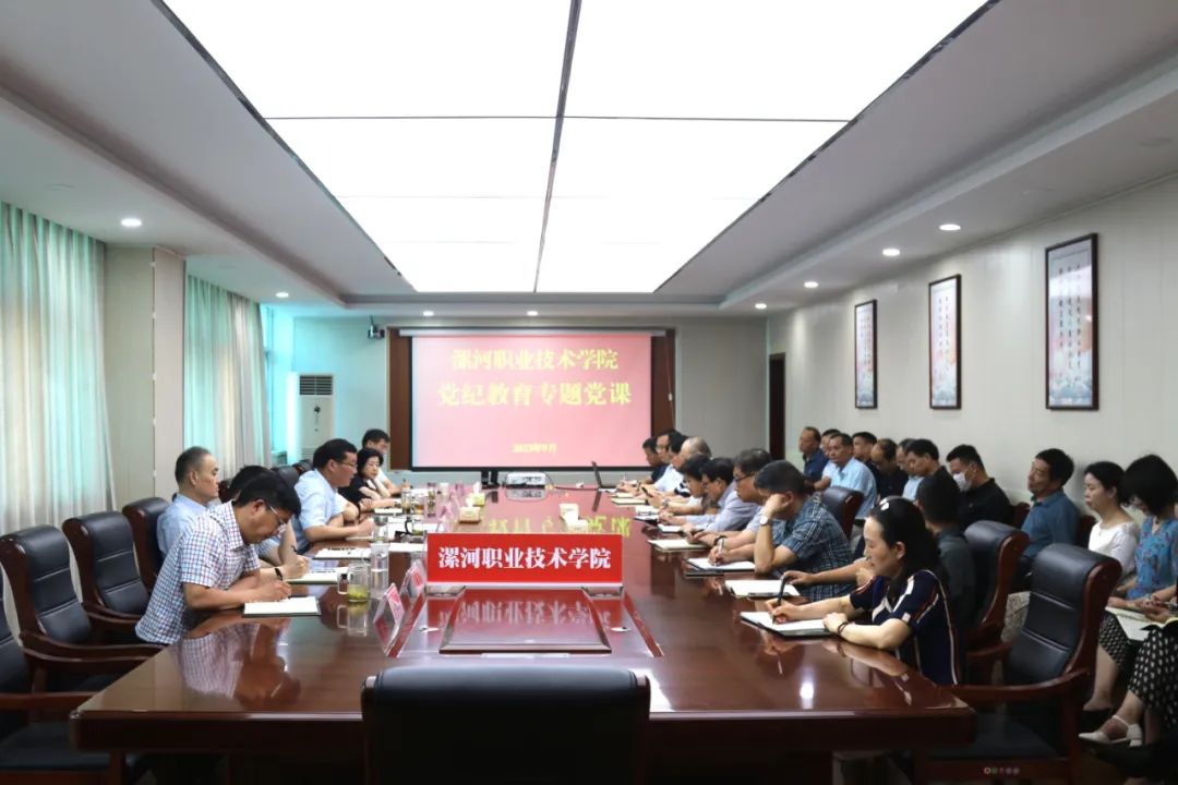 新学期伊始,为深入推进学院党风廉政建设,进一步加强党的纪律建设,增强领导干部纪律规矩意识和廉洁从业意识,9月4日,漯河职业技术学院党委书记易军鹏讲授党纪教育专题党课。学院党委班子成员及各职能部门、各教学系部负责同志认真聆听党课。易军鹏传达学习省委书记楼阳生在全省党纪教育警示大会上的讲话精神,并结合学院工作实际,围绕“认清形势、保持清醒,一刻不停推进全面从严治党”“修身律己、慎终如始,彰显共产党员...