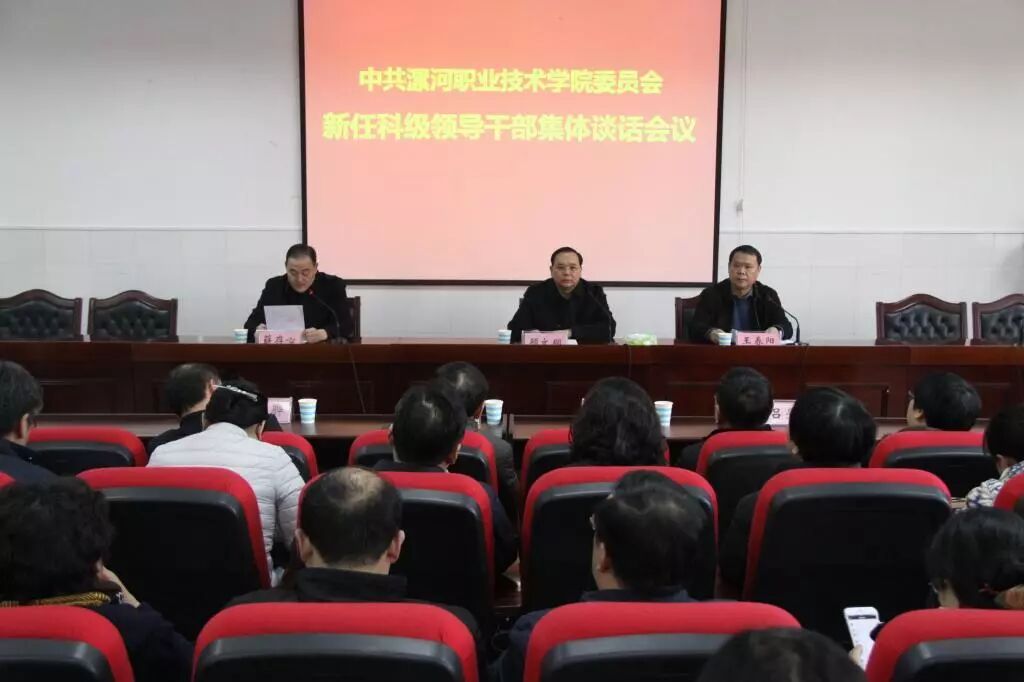 7月7日下午,漯河职业技术学院召开领导干部大会,宣布了省委组织部、市委关于学校党委书记任职调整的决定。漯河市委常委、组织部部长吕娜,市委组织部副部长李磊出席会议。学校党委班子成员,各职能处室负责人,院系部书记、主任参加会议。会议由漯河市委常委、组织部部长吕娜主持。漯河市委常委、组织部部长吕娜介绍了新任党委书记易军鹏同志的基本情况,并表示此次任命是省委组织部、市委根据学校领导班子建设实际和长远发展...