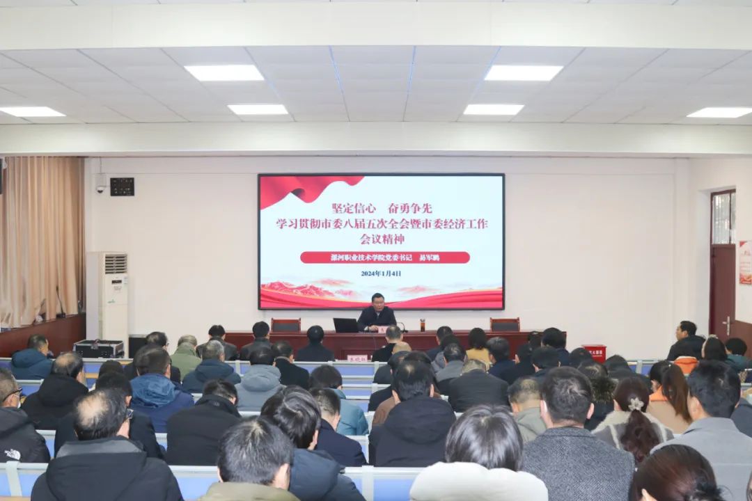 1月4日上午,漯河职业技术学院召开专题会议,传达学习市委八届五次全会暨市委经济工作会议精神,研究安排贯彻落实工作。学院党委书记易军鹏主持会议并讲话。学院党委领导班子成员、副科级以上领导干部参加会议。易军鹏指出,要把学习宣传贯彻市委八届五次全会暨市委经济工作会议精神作为学院当前一项重要的政治任务,与学习宣传贯彻党的二十大精神结合起来,与贯彻落实中央、省委、市委决策部署结合起来,与抓好主题教育、推...
