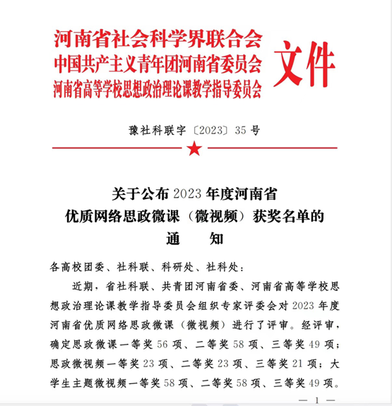 近日,河南省社科联、共青团河南省委、河南省高等学校思想政治理论课教学指导委员会下发《关于公布2023年度河南省优质网络思政微课(微视频)获奖名单的通知》(豫社科联字〔2023〕35号),漯河职业技术学院马克思主义学院教师积极参赛并取得了优异成绩。自活动启动以来,学校高度重视,鼓励思政课教师积极参与,将党的二十大精神及习近平总书记系列重要讲话精神融入其中,做到内容与形式并重,既要不断挖掘新理论,又要用好新...