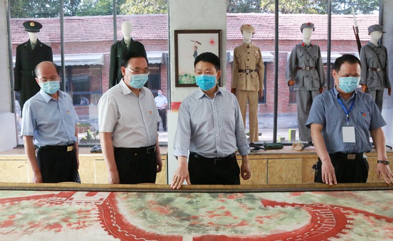 在学校服装创意产业园,贾宏宇详细了解我校服装设计工作室引进企业真实项目,与郑州卡伊简爱服饰有限公司、漯河太思米亚穆斯林服饰有限公司的合作情况。他对我校服装设计作品在马来西亚国际时装周先后荣获“亚洲最具影响力设计师奖”、“最具潜力国际设计师奖”表示称赞,并建议学校以此为基础加大与企业的合作力度,做大做强引企入校工作。在扎染蜡染作品陈列室,专业教师为贾宏宇一行详细讲解了《白毛女》《董存瑞》《地道战》等一幅幅用非物质文化遗产——扎染和蜡染技术创作的红色作品,对我校把革命传统教育、爱国主义教育、非遗文化传承同专业学习结合起来,把弘扬红色文化、传承红色基因与专业技能训练结合起来,实现了学生政治思想和专业素质的双提升,做好了红色基因与非遗项目的双传承,开辟了传承红色基因和非物质文化遗产的新领地给予了充分肯定。