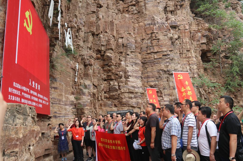 党的十九大报告提出要着力建设高素质专业化干部队伍,这是历次党代会报告中第一次把“高素质”和“专业化”一起作为干部队伍建设的整体目标。为响应党中央和习总书记的号召,准确把握、认真落实党的十九大对干部队伍建设提出的新要求,进一步培育学院广大领导干部艰苦奋斗、爱岗敬业、乐于奉献的工作精神,全面提升领导干部的能力和素质。在中国共产党97岁生日之际,学院各部门负责人、中层骨干等78名领导干部在党委书记顾文明、院长王春阳的带领下走进红旗渠、焦裕禄等教育基地参观学习,亲历红旗渠精神和焦裕禄精神,在听、看、行、议中深刻感悟林县人民战太行、富太行、美太行的奋斗精神和英雄事迹;学习、体会焦裕禄同志“亲民爱民、艰苦奋斗、科学求实、迎难而上、无私奉献”的精神。