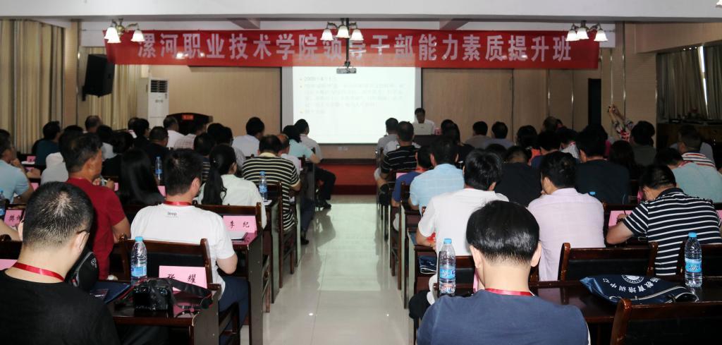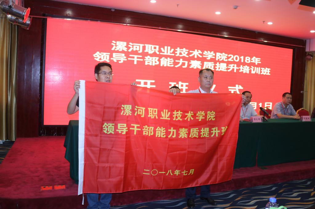 7月1日下午,学院领导干部能力素质提升培训班在红旗渠精神教育基地隆重开班。顾文明在开班仪式上致辞并为培训班授旗。全体学员面对党旗庄严宣誓。中共安阳市委党校党史党建教研部副教授陈晓萍为大家讲了以《领导干部能力素质提升——弘扬红旗渠精神,深化“两学一做”》为题的第一课,使大家对红旗渠精神有了初步了解。