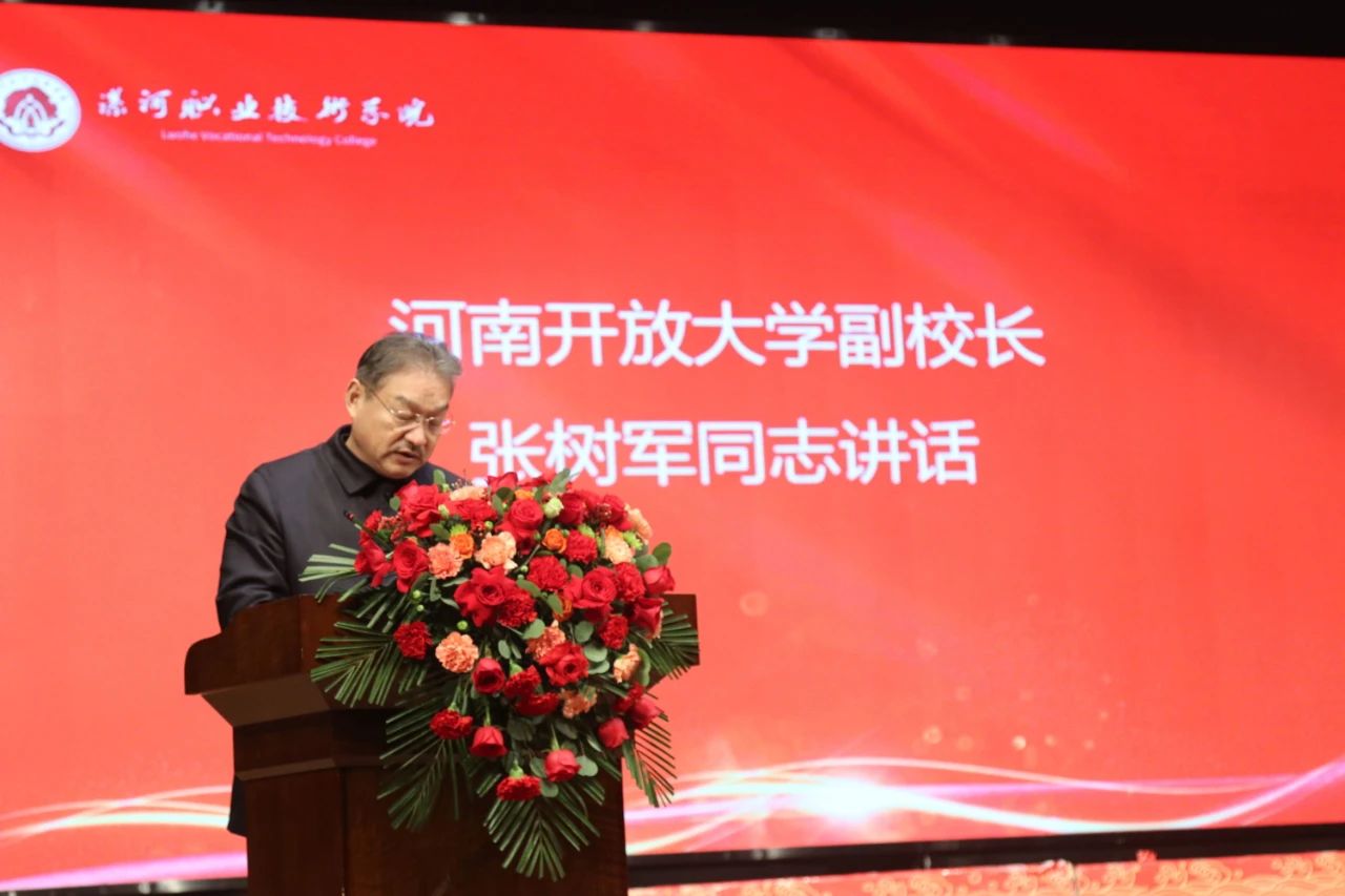 河南开放大学副校长张树军指出,漯河广播电视大学始终扎根基层一线,充分利用现代信息技术,探索实践学历教育、社区教育、老年教育等多种教育形式,办学规模不断扩大,办学质量稳步提升,为漯河地区各行各业培养了大批优秀人才,为地方经济社会发展作出了重要贡献。更名为漯河开放大学,是落实省第十一次党代会精神的重要举措,是贯彻《河南省开放大学综合改革方案》的具体实践,也是学校办学水平和人才培养迈上新台阶的重要标志。希望漯河开放大学以此为契机,加快综合改革步伐,不断提高办学水平,提升服务能力,为加快推进我省教育现代化、建设教育强省作出新的更大贡献。