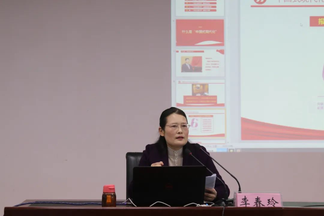 市委宣讲团成员、漯河职业技术学院思想政治理论部李春玲副教授以《全面准确把握中国式现代化的丰富内涵》为题作专题辅导报告