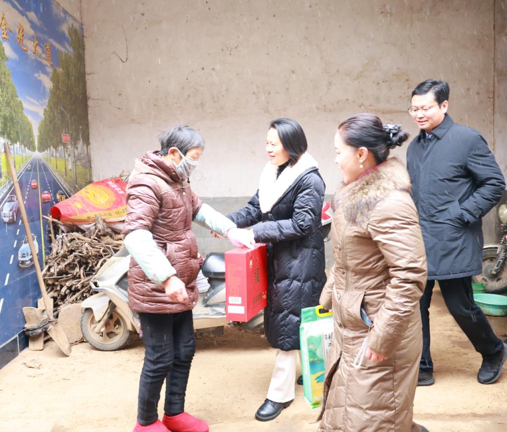 在结对帮扶村党群服务中心,邢淑婕、薛存心分别与大赵村、拐子王村驻村干部亲切交流,听取近期工作情况,对新一年驻村帮扶工作提出意见和建议,并鼓励大家扎根基层、担当作为,为推进乡村全面振兴贡献力量。在走访帮扶村党员群众时,送去大米、食用油等生活物资,细致询问家庭收入、健康状况及实际需求,现场协调解决相关问题,让他们过一个安乐祥和的新春佳节。