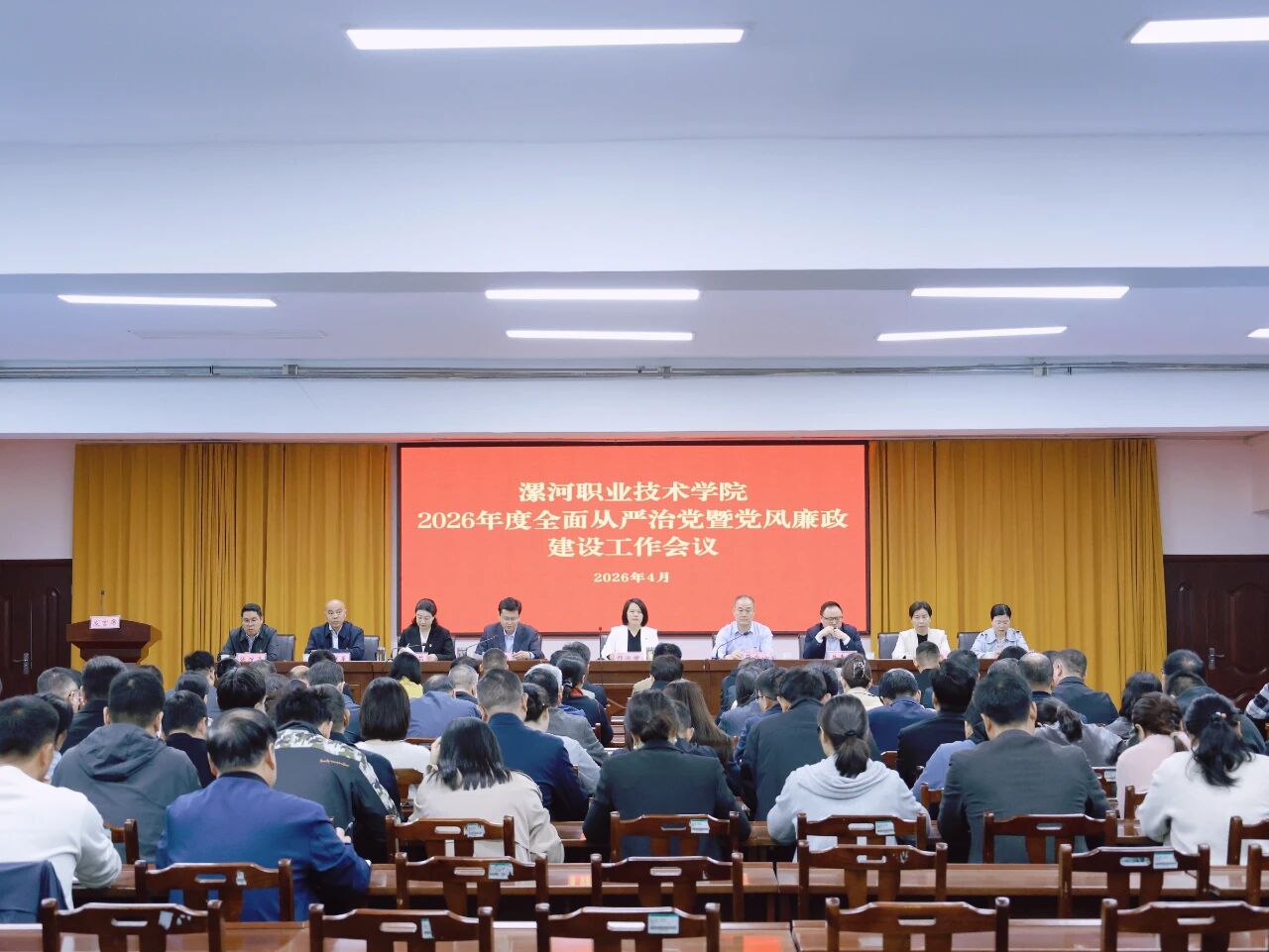 4月8日,漯河职业技术学院召开2026年度全面从严治党暨党风廉政建设工作会议,学习贯彻习近平总书记关于党的建设、关于党的自我革命的重要思想,贯彻落实二十届中央纪委五次全会和省委、市委关于全面从严治党部署要求,总结2025年工作,部署2026年任务。学校党委书记邢淑婕出席并讲话,党委副书记、校长薛存心主持会议。学校领导班子成员、副科级以上领导干部参加。