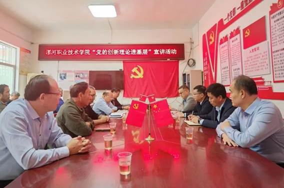 10月10日,漯河职业技术学院党委书记易军鹏深入到结对共建村舞阳县莲花镇大赵村,宣讲党的创新理论,实地调研指导乡村振兴工作,看望慰问驻村干部及奋战在“三秋”生产一线的党员干部和群众。学院党委副书记薛存心,学院党委委员、组宣部部长缪俊岭,舞阳县委常委、组织部部长魏书念,舞阳县政协副主席郭军英,市、县派驻大赵村第一书记,大赵村干部、党员和群众代表参加。会议由舞阳县莲花镇党委书记苗建伟主持。易军鹏围绕“...